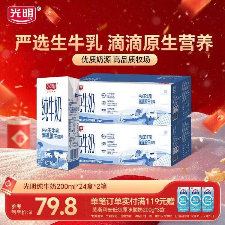 光明 早餐纯牛奶200ml*48盒