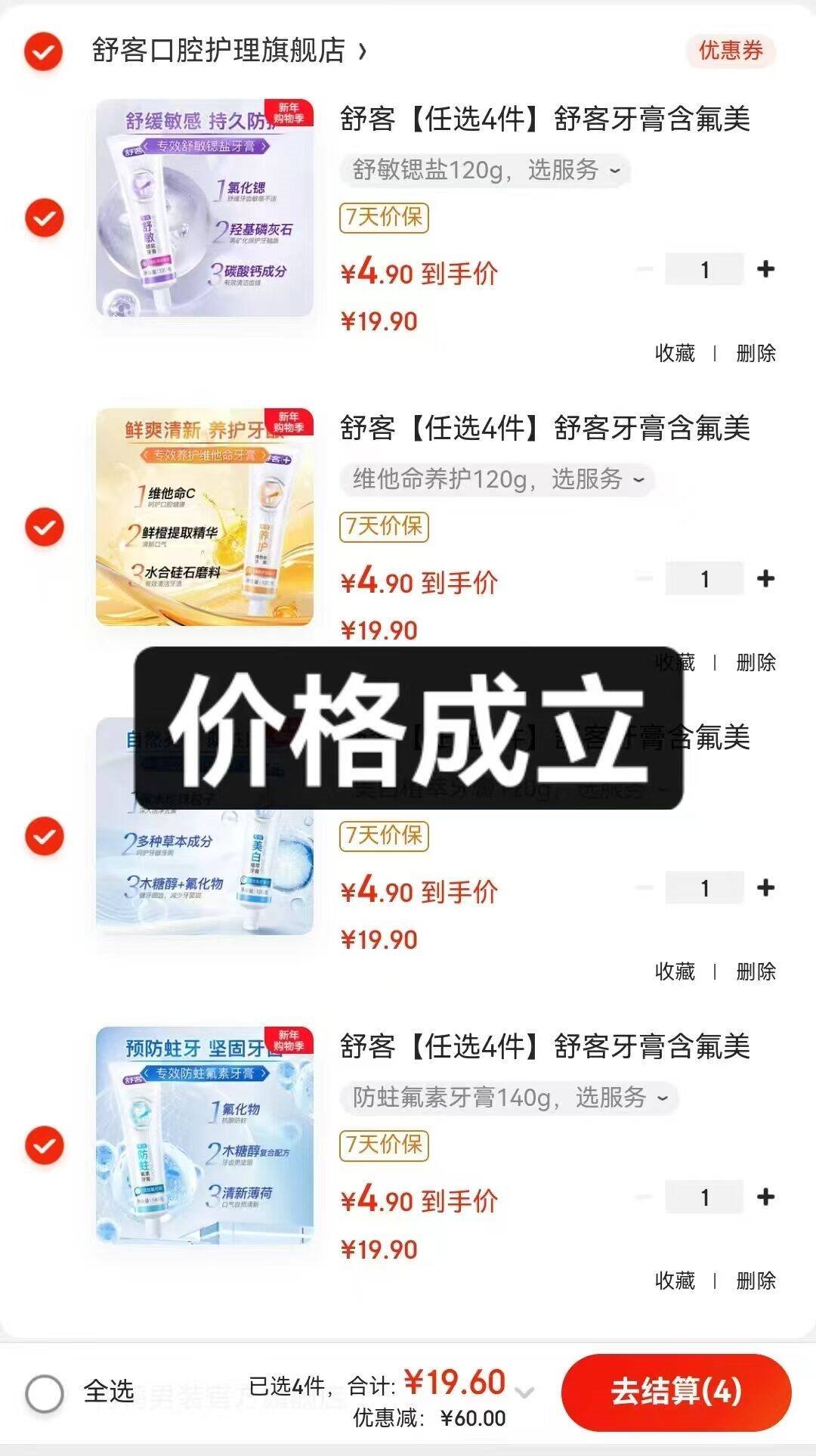 舒客个护任选車 舒客 牙膏/牙刷/儿童牙膏任选 任选4件19.6亓,折4.9亓/件好单发报员2026年01月02日 09:230举报 ——舒客个护任选車——舒客 牙膏/牙刷/儿童牙膏任选https://u.jd.com/A1cFS20任选4件19.6亓,折4.9亓/件*都是正装 真的太值咯 挑一挑复制文案