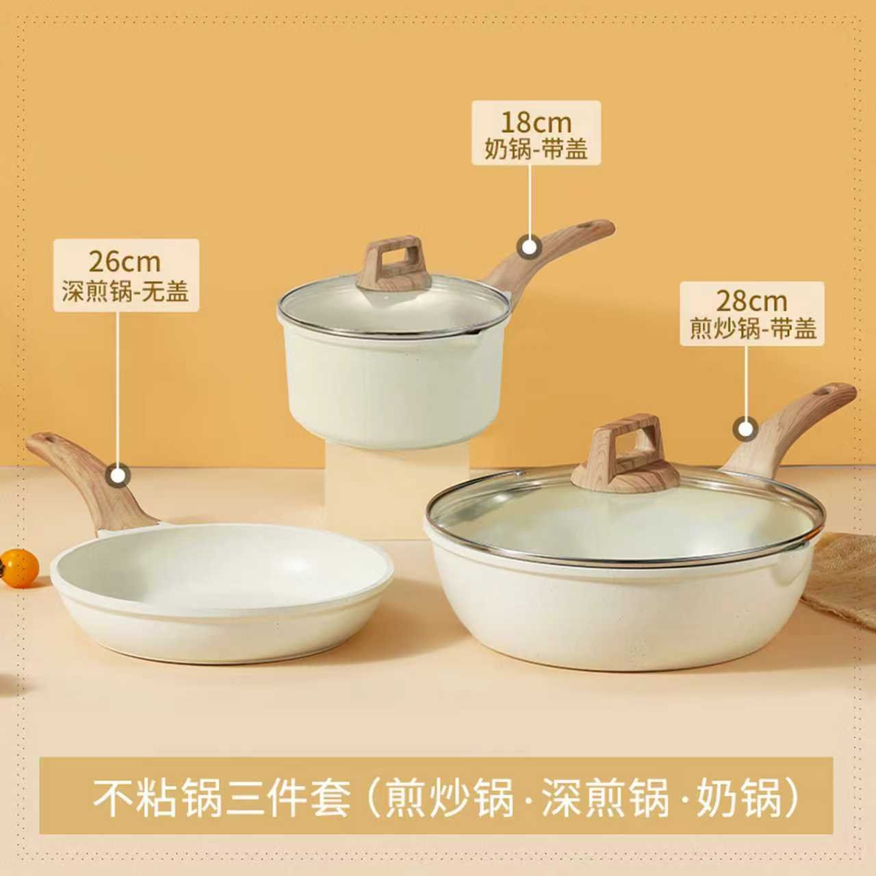 卡罗特 家用麦饭石不粘锅3件套