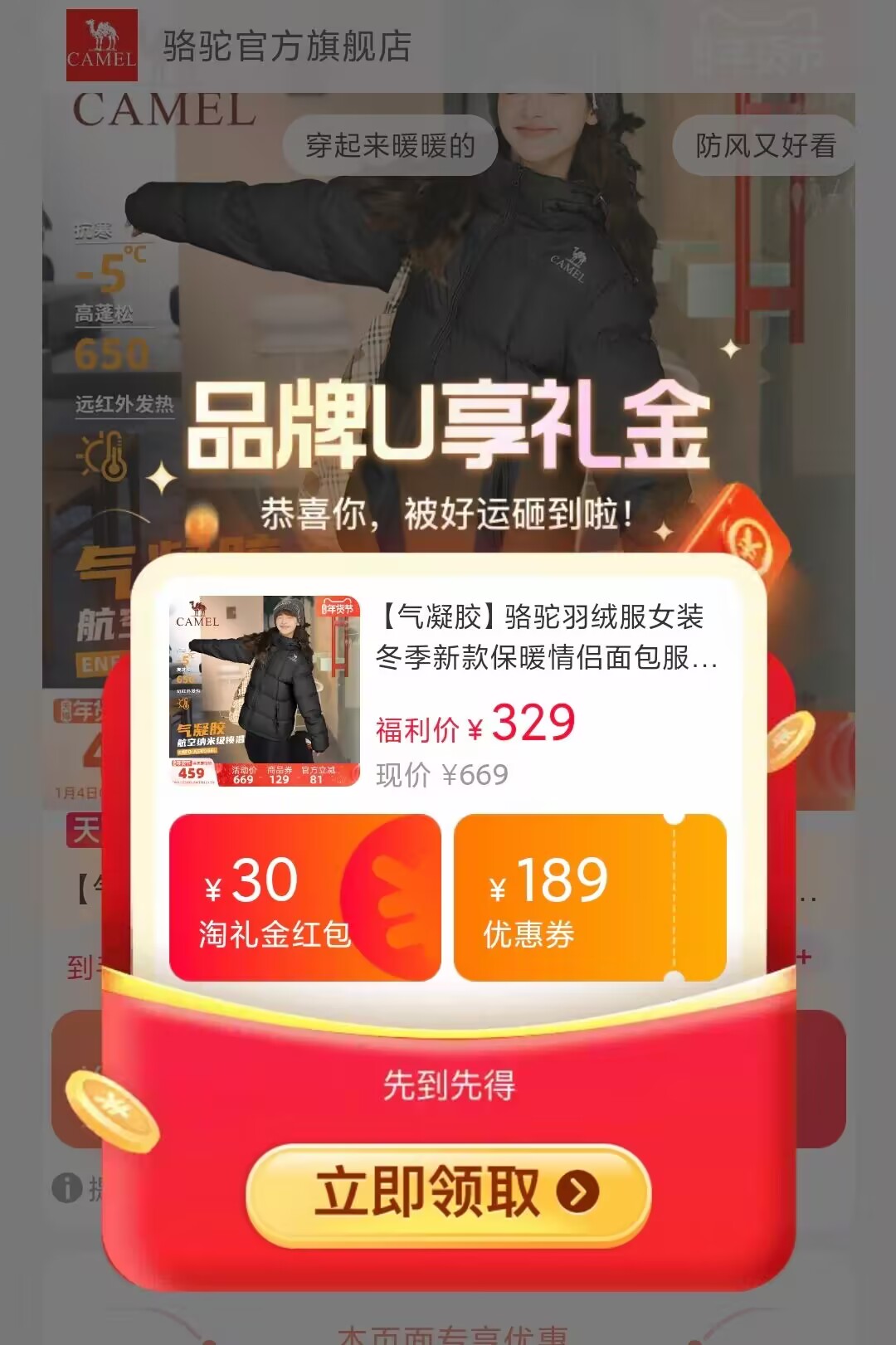 【气凝胶】骆驼羽绒服冬季新款