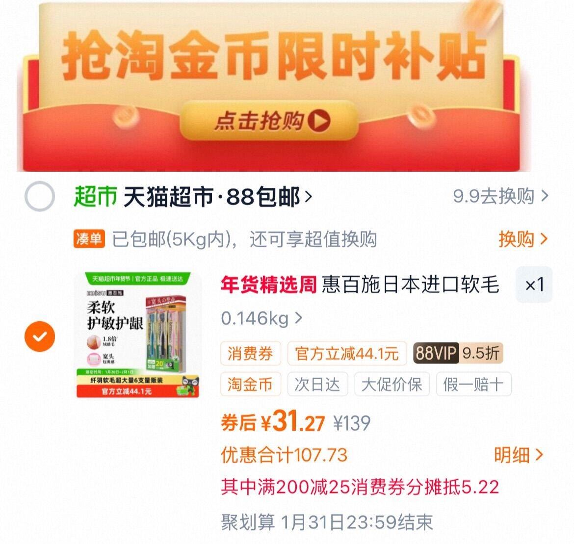 2、凑1件,用消费券