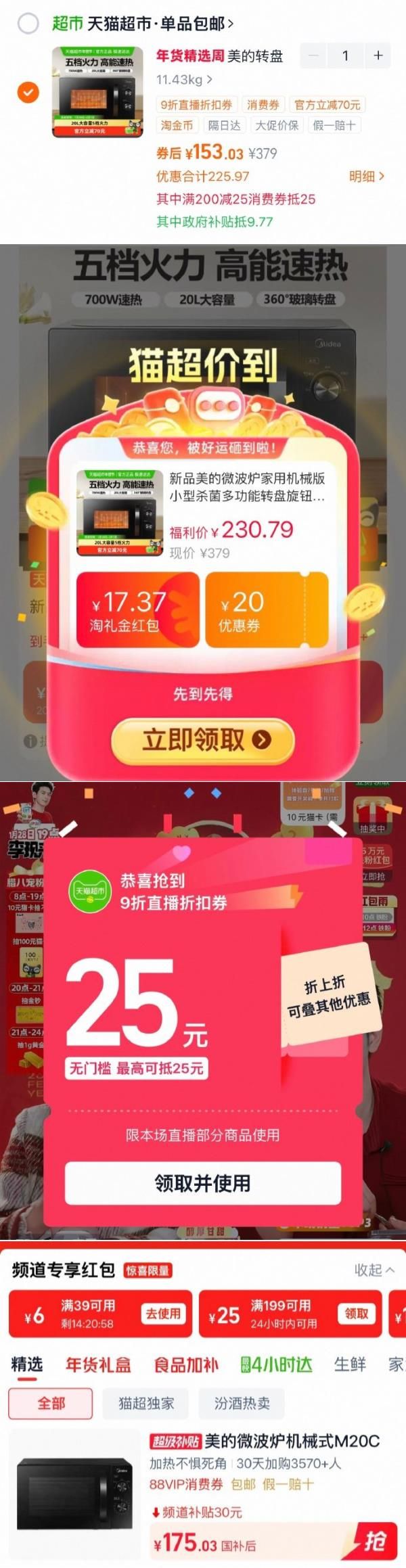 美的微波炉家用机械版20L黑色M20C,领礼金