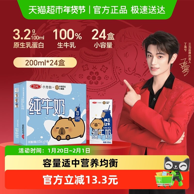 三元小方白纯牛奶全脂灭菌乳