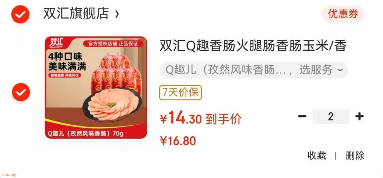 双汇 Q趣香肠 (孜然风味香肠)70g*8个,拍2件【28.6】