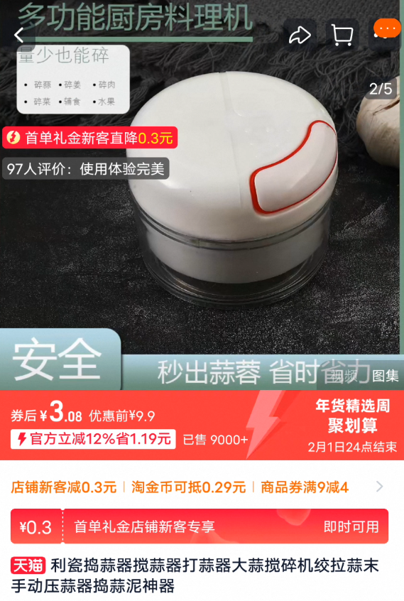 3.4亓速直接拍 利瓷 手动捣蒜器压蒜器