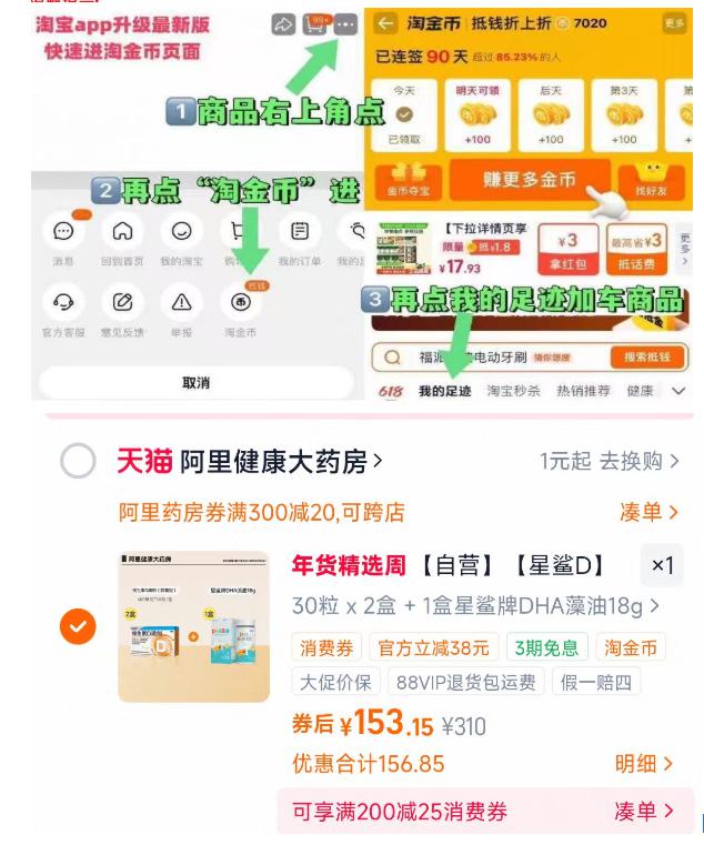 2.商品右上3个点,选淘金币