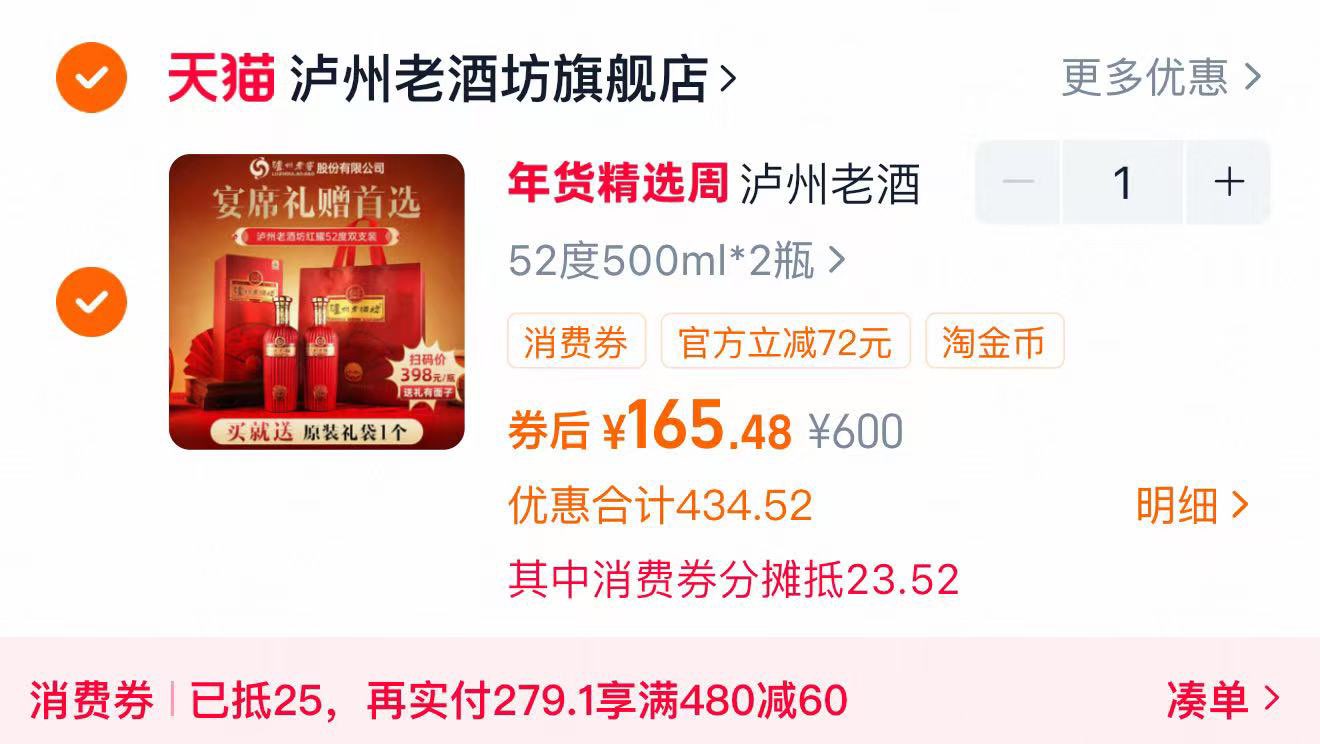 凑后165.4亓 折82.7亓/瓶