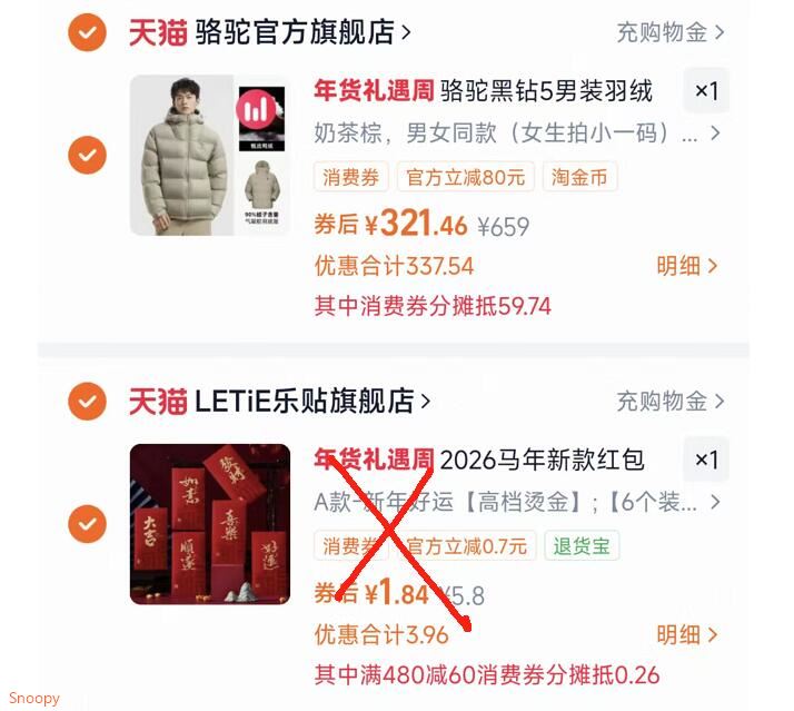 4.最后一步 凑単商品1件 拍6个装选项才对 骆驼羽绒服88到手321元好单发报员2026年02月04日 10:330举报 4.最后一步 凑単商品1件(拍6个装选项才对)https://m.tb.cn/h.7HdA0is骆驼羽绒服88到手321元购物金95折后到手305.3元复制文案