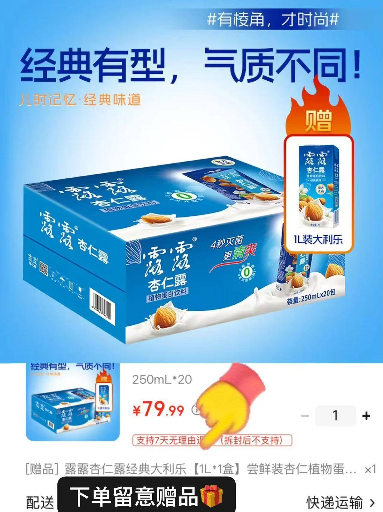 露露饮料发車 露露 杏仁露饮料250ml*20盒 65.9亓,再赠同款杏仁露1L好单发报员2026年02月04日 13:200举报 ——露露饮料发車——露露 杏仁露饮料250ml*20盒https://u.jd.com/J179GqJ65.9亓,再赠同款杏仁露1L*顺丰物流 自喝送礼都不错复制文案