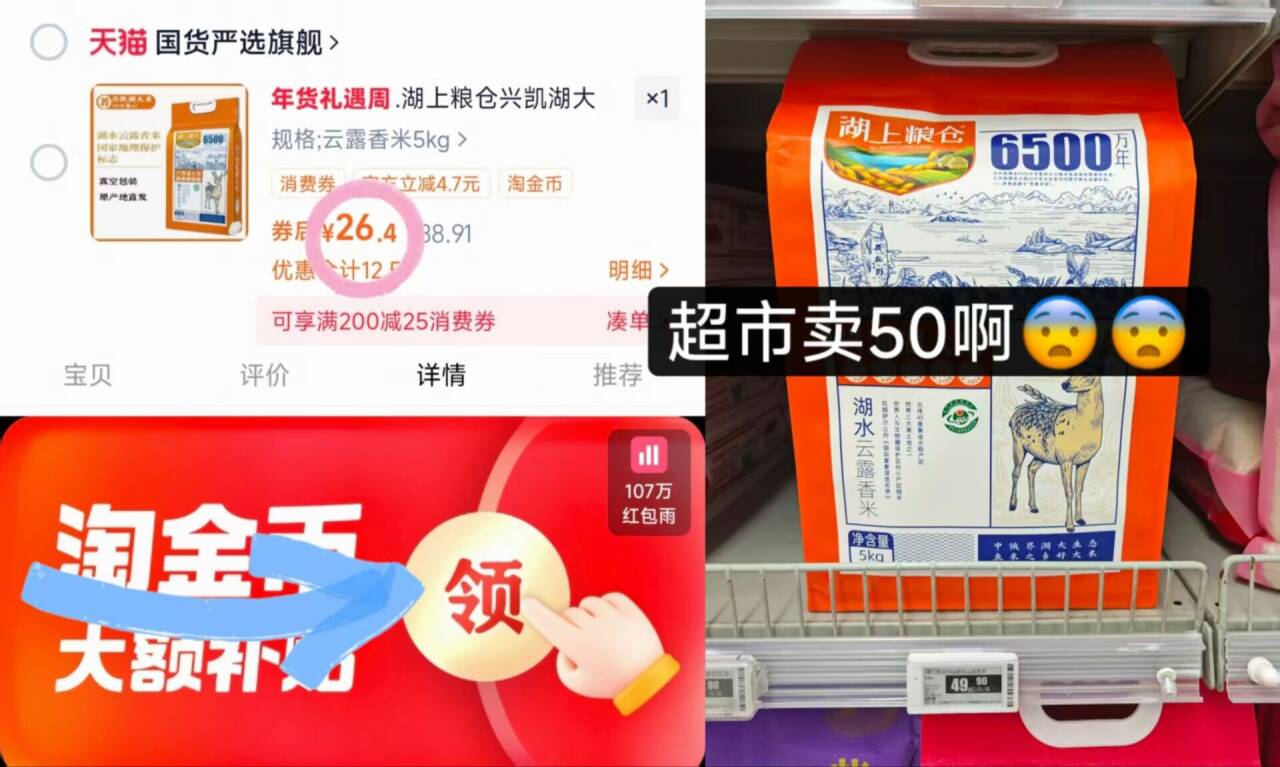 速2.6元/斤湖上粮仓大米 下拉详情抵扣金币26.4元10斤 - 好单发报员 2026年02月04日 17:37 0 举报 速2.6元/斤湖上粮仓大米下拉详情抵扣金币26.4元10斤https://m.tb.cn/h.7tRprmn-过年多备点,超市翻倍卖呀 复制文案