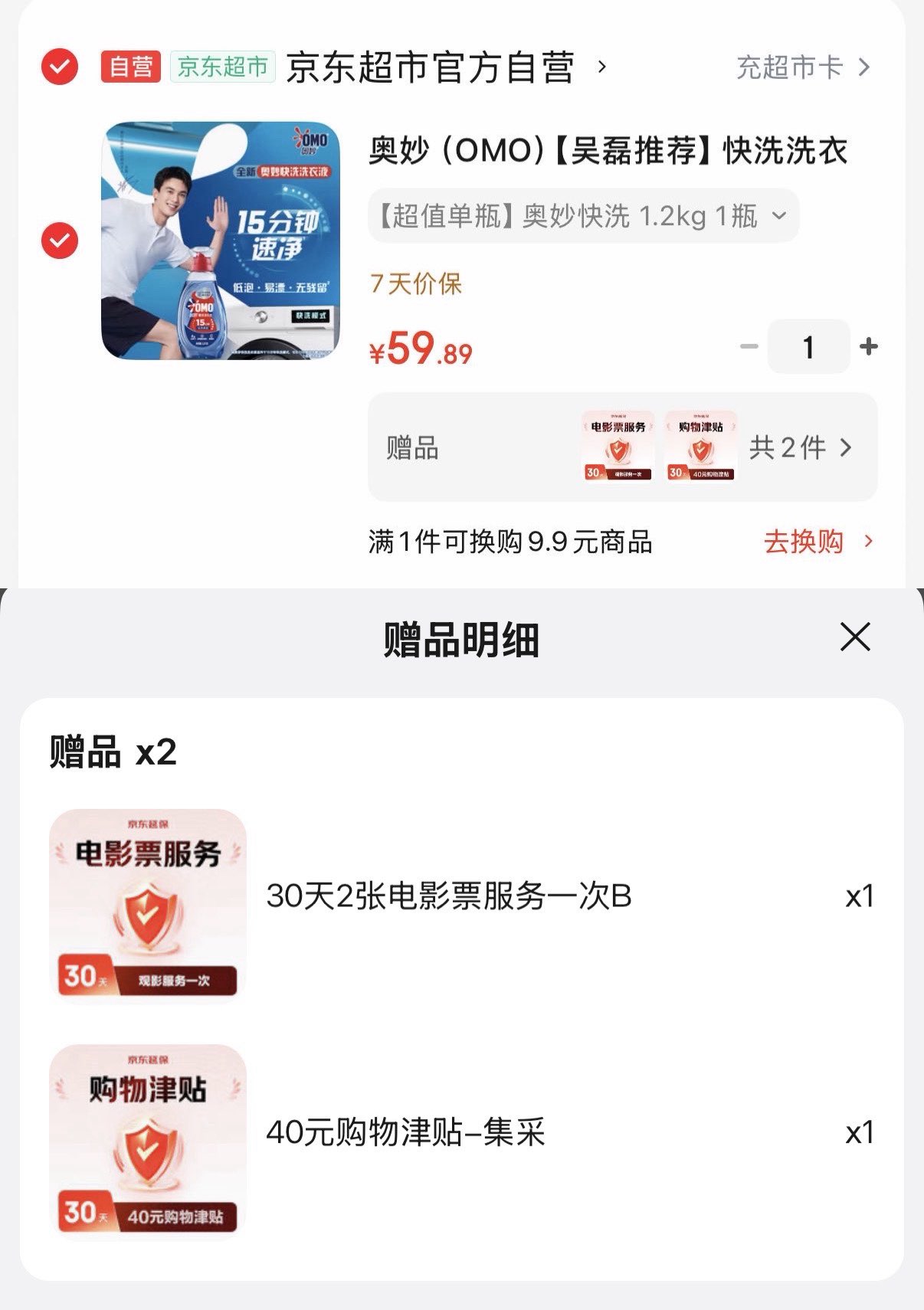 奥妙 快洗洗衣液2.4斤 拍下59.9亓 赠40亓够物津贴 再赠电影票2张 春节档可用好单发报员2026年02月04日 18:260举报 奥妙 快洗洗衣液2.4斤拍下59.9亓 赠40亓够物津贴再赠电影票2张 春节档可用https://u.jd.com/JgXB5fq 复制文案