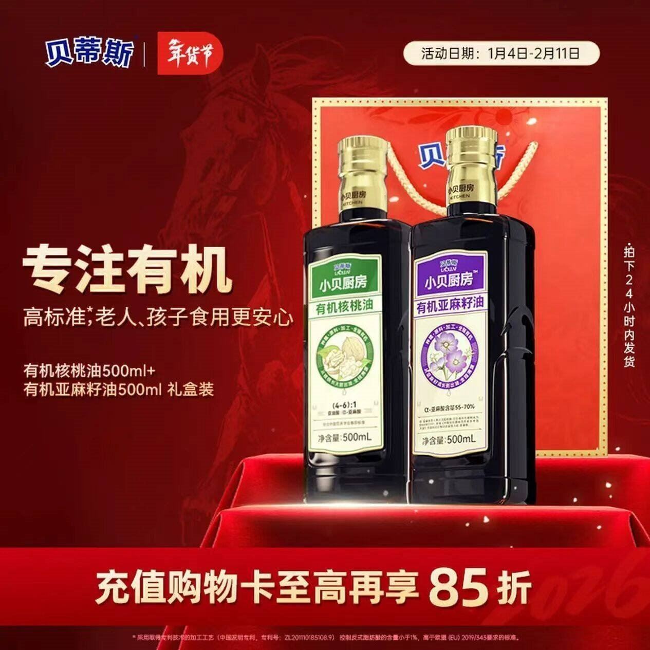 年货粮油礼盒囤 贝蒂斯 有机核桃油 亚麻籽油 组合500ml*2瓶 礼盒装好单发报员2026年02月04日 19:270举报 ——年货粮油礼盒囤——贝蒂斯 有机核桃油 亚麻籽油组合500ml*2瓶 礼盒装https://u.jd.com/J1XH3Vj 89亓,超.市同歀要卖200亓 *还是有机的 高标准 送礼很赞复制文案