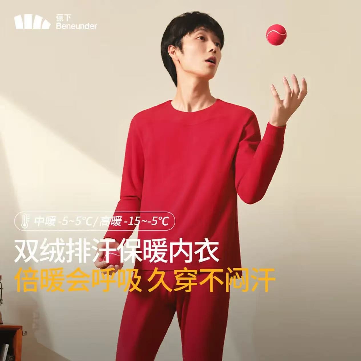 蕉下 男红色本命年保暖内衣