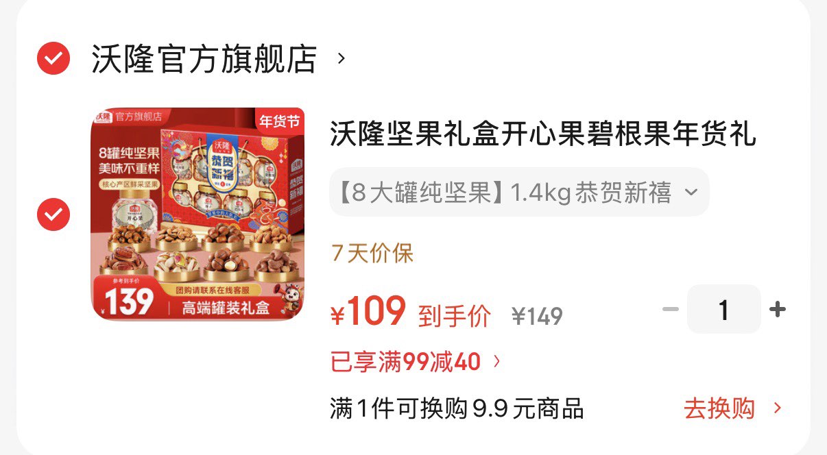109亓 沃隆坚果礼盒8大罐纯坚果1.4kg恭贺新禧