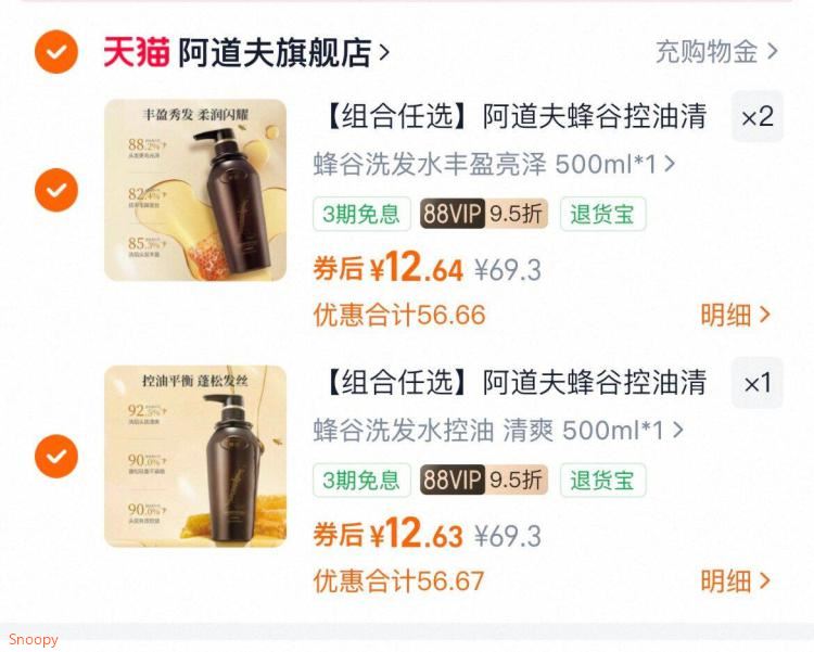 阿道夫洗发水500ml*3瓶37元 拍3件才成立, 折12.6/瓶好单发报员2026年02月05日 14:030举报 阿道夫洗发水500ml*3瓶37元拍3件才成立, 折12.6/瓶https://m.tb.cn/h.7tJLxvY复制文案