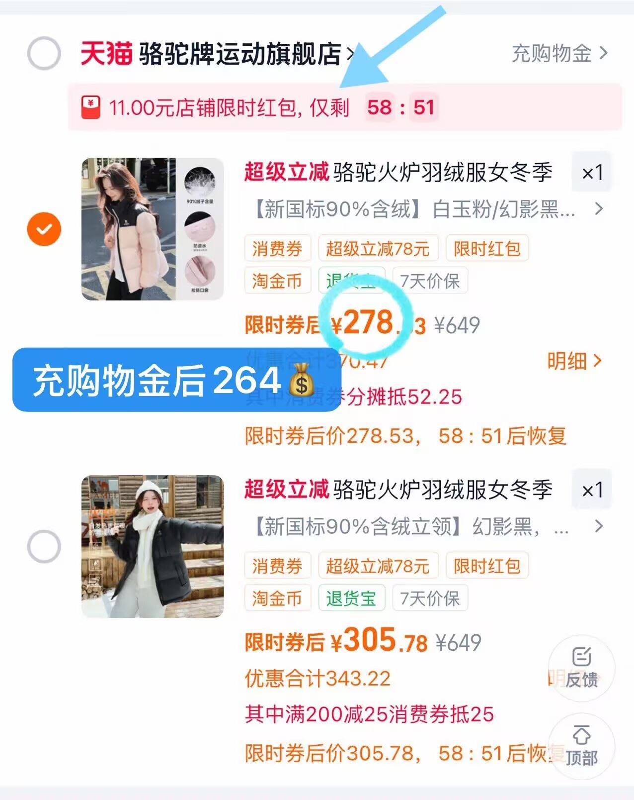264元骆驼火炉羽绒服