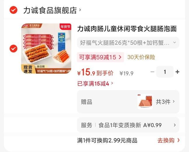 力诚 好福气淀粉火腿肠 53根(含赠)