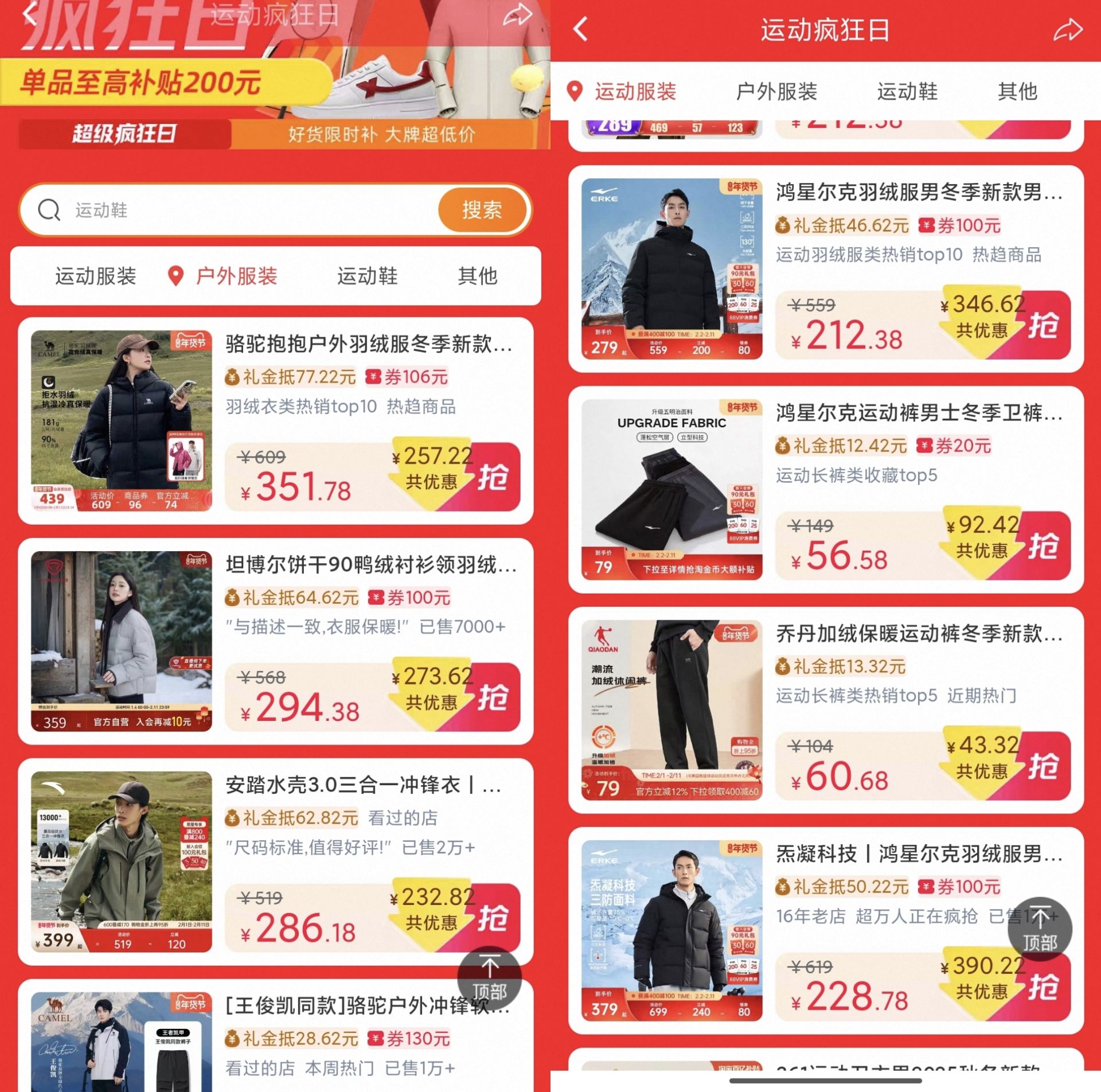 服饰礼金补贴合集 李宁、特步、361、鸿星尔克 森马、安踏、骆驼、坦博尔