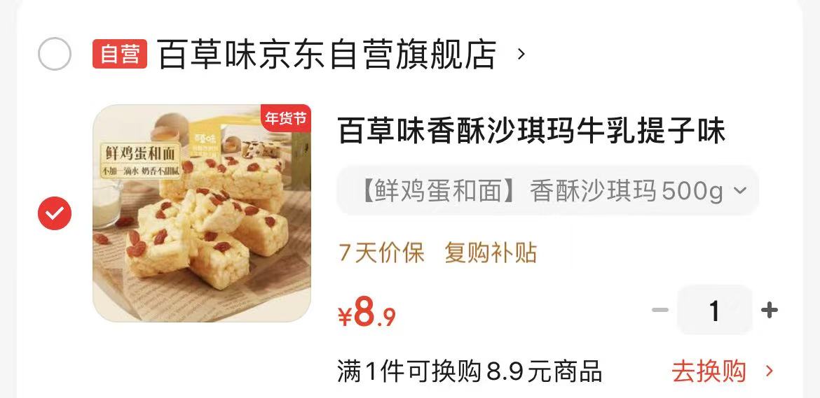 百草味 香酥沙琪玛牛乳提子味500g【8.9】