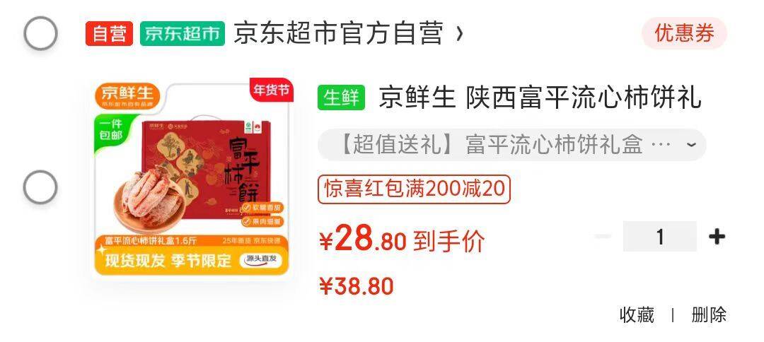 京鲜生 陕西富平流心柿饼净重1.6斤