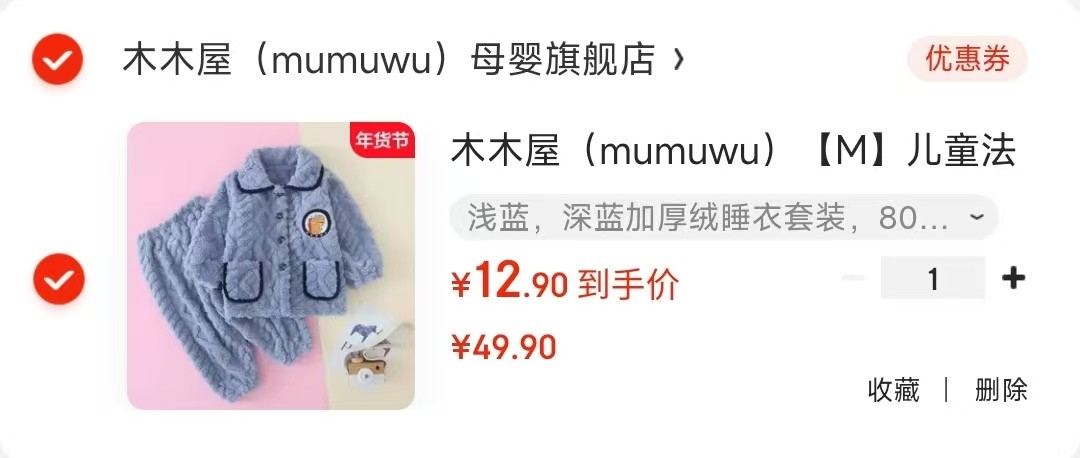 木木屋 儿童法兰绒睡衣套装 建议70-85cm【12.9】
