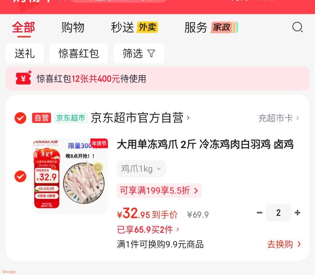 ‘大用 单冻鸡爪 2斤 冷冻鸡肉白羽鸡,拍2件 65.9 ’好单发报员2026年02月05日 20:020举报 ‘大用 单冻鸡爪 2斤 冷冻鸡肉白羽鸡,拍2件【65.9】https://u.jd.com/J1xJRzg ’复制文案