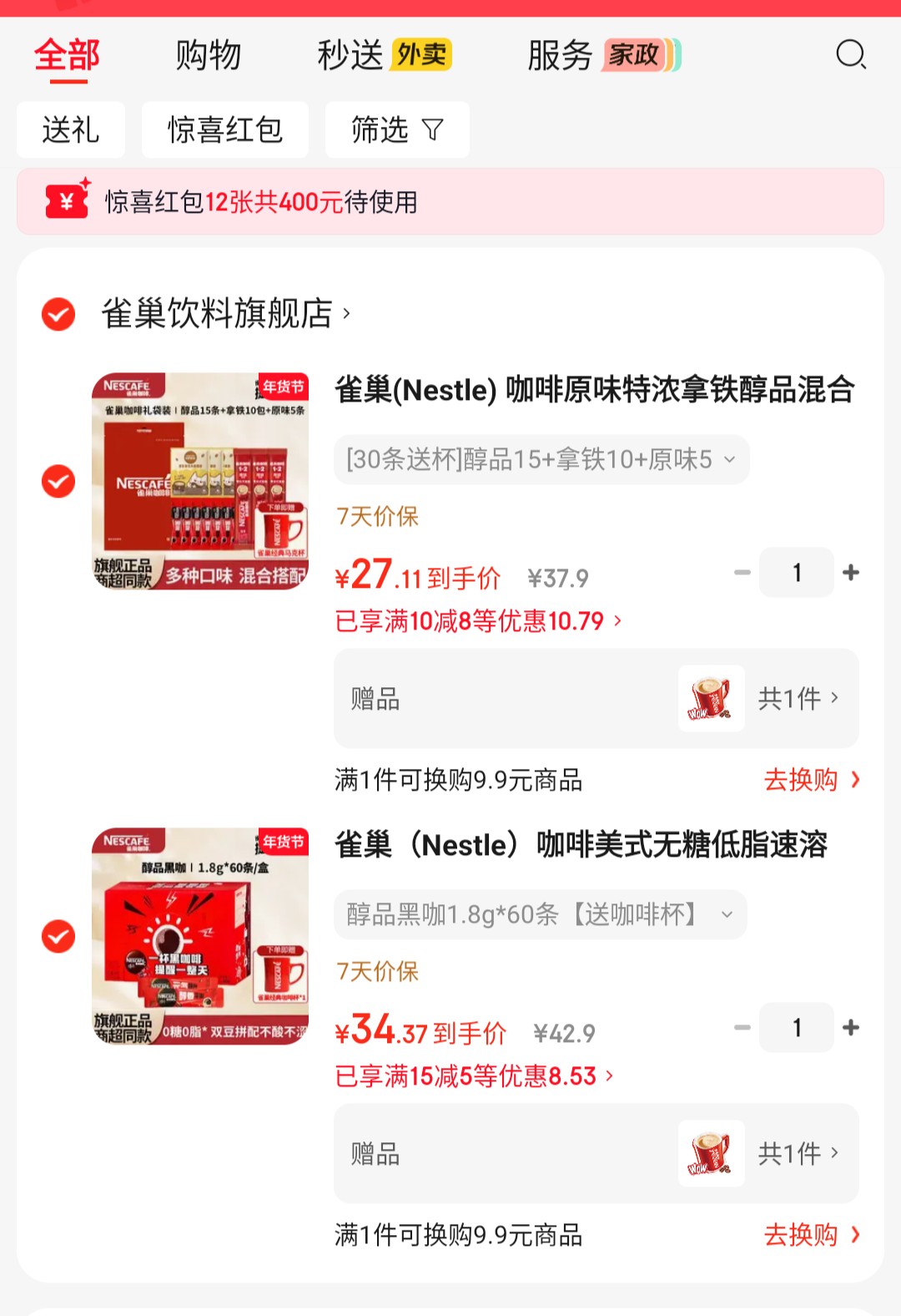 雀巢 Nestle 咖啡原味特浓拿铁 醇品15 拿铁10 原味5【29.9】送咖啡杯