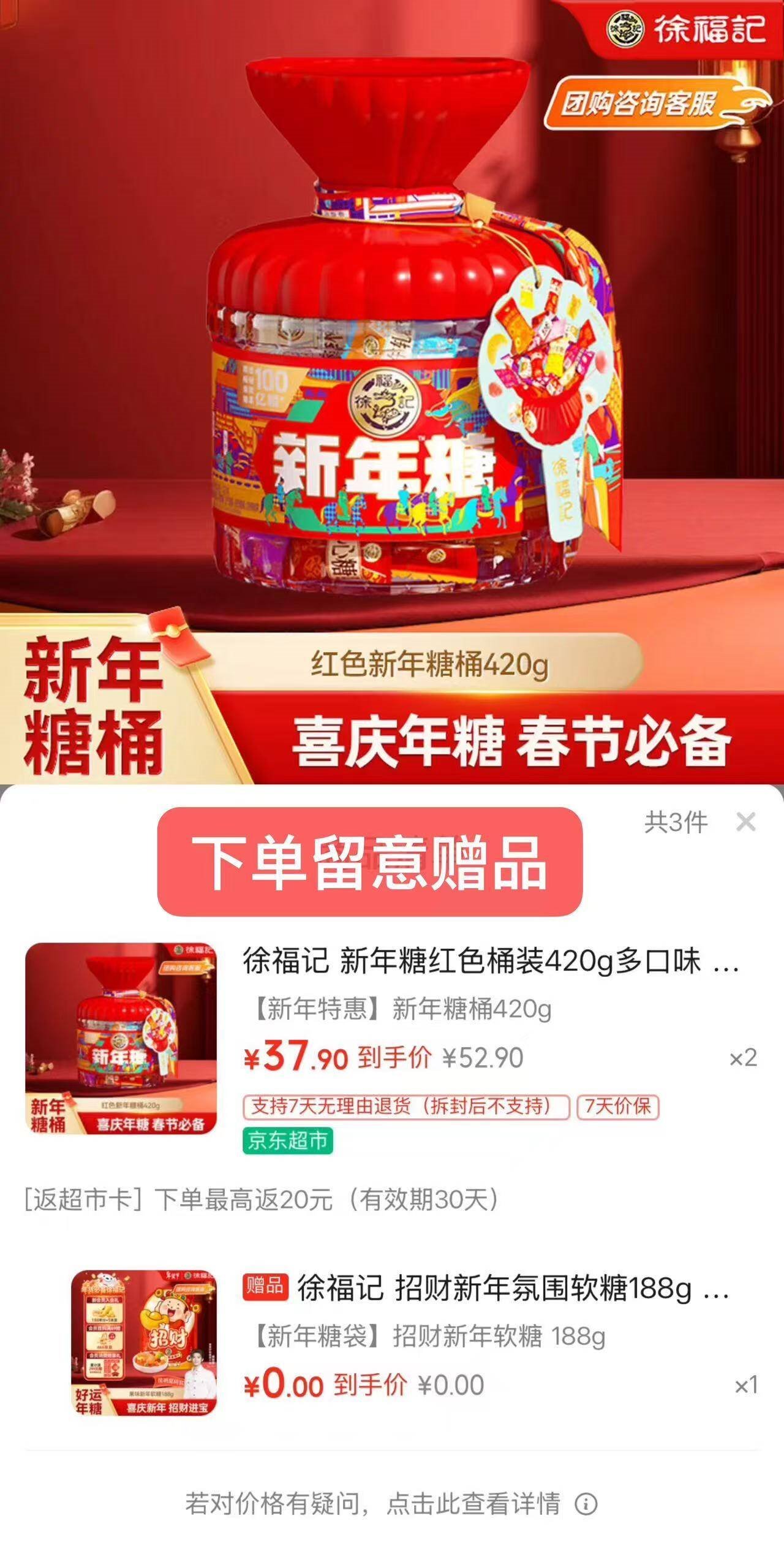 块冲糖桶shen忦 自营 徐福记 红色糖桶420g 买2件75.8亓,反20亓超.市卡好单发报员2026年02月05日 20:330举报 ——块冲糖桶shen忦——【自营】徐福记 红色糖桶420ghttps://u.jd.com/JaxNOzL买2件75.8亓,反20亓超.市卡*赠忦值5亓招财新年软糖188g*才折25.4亓/件 可拆卸当摆盘复制文案