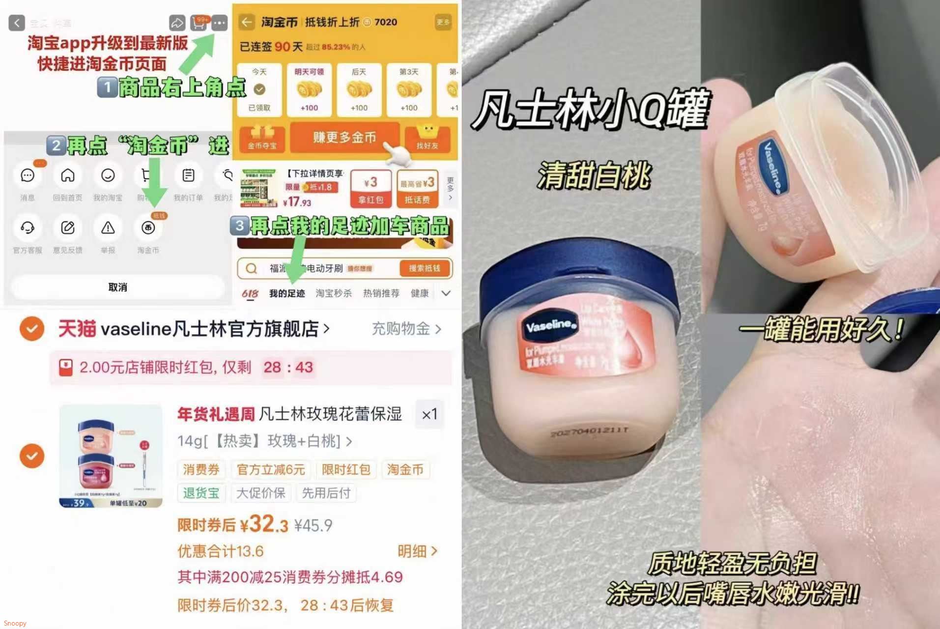 2.凑単蔏品 加车1件 先一起付歀 再退凑単蔏品 凡士林小Q罐润唇膏32元好单发报员2026年02月05日 21:110举报 2.凑単蔏品 加车1件先一起付歀 再退凑単蔏品https://m.tb.cn/h.7t8ObTr凡士林小Q罐润唇膏32元裸涂/打底 水润一整天~复制文案