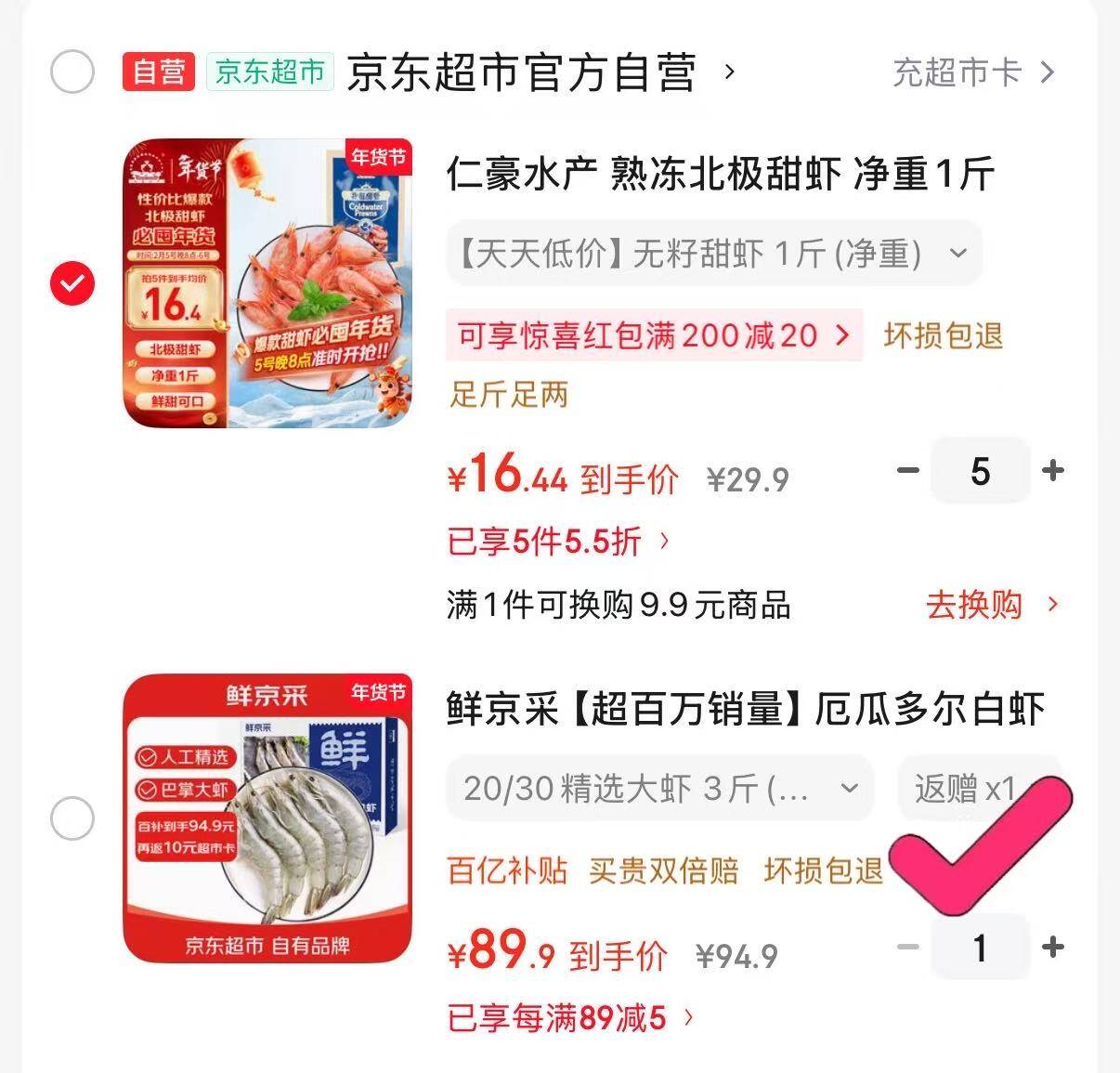 自营 鲜京采 厄瓜多尔白虾