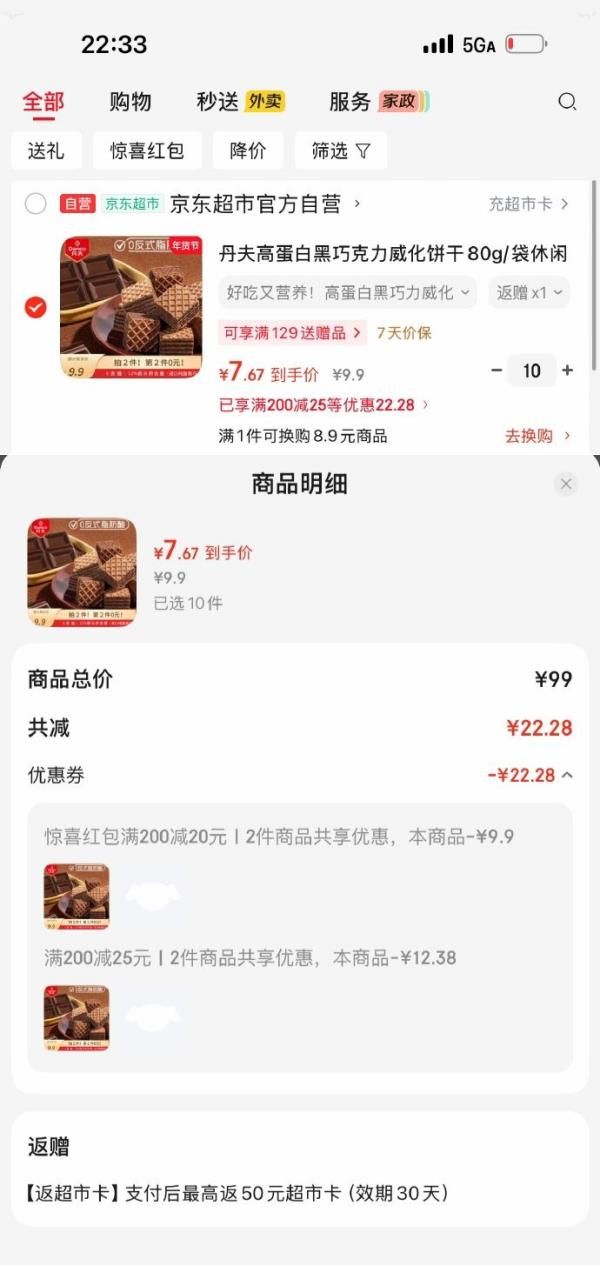 拍10件,每件7.67 返5卡