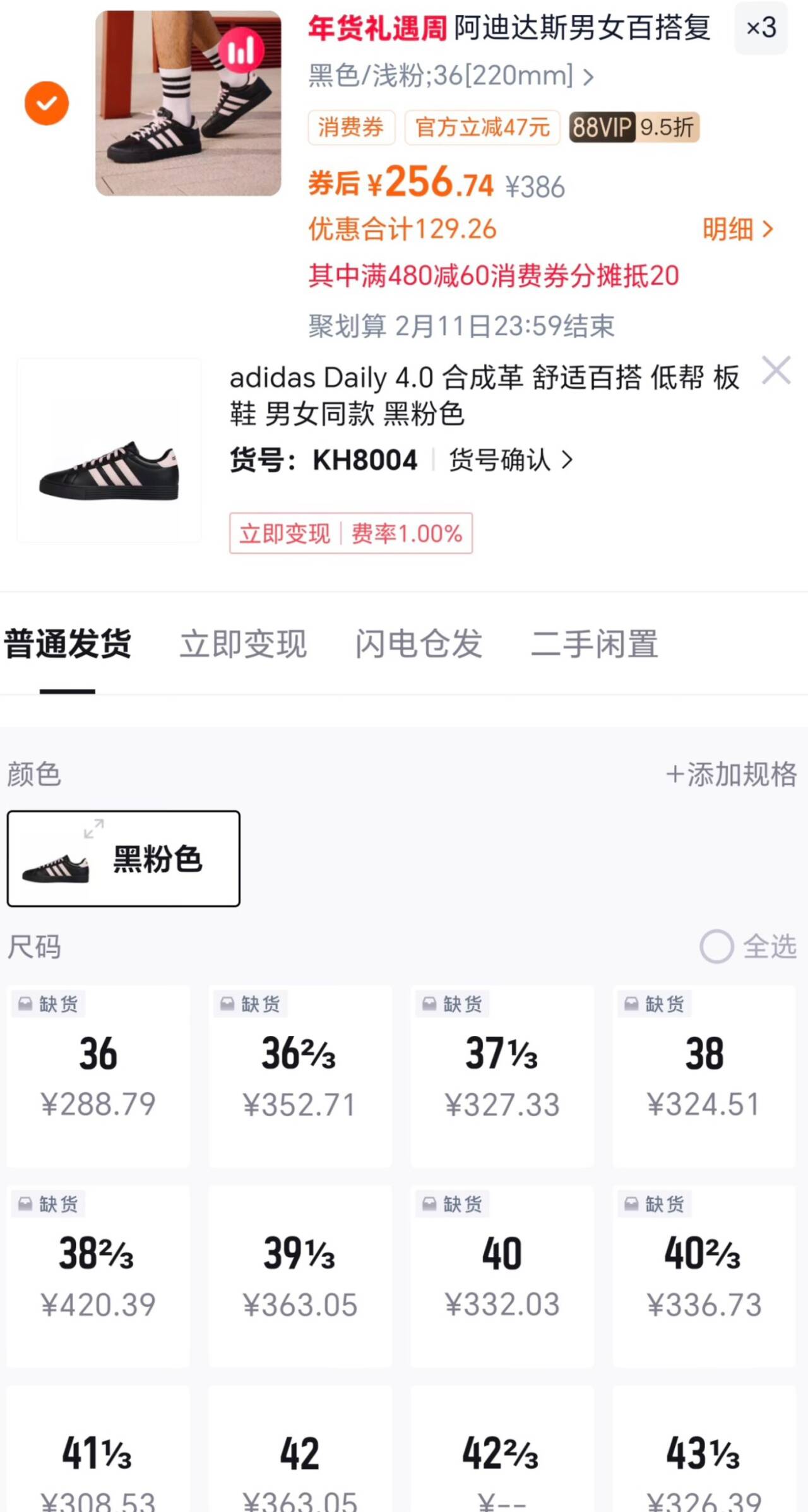 阿迪板鞋秒荬窽 需要肖費卷到手256 购物琻240 锝.物358