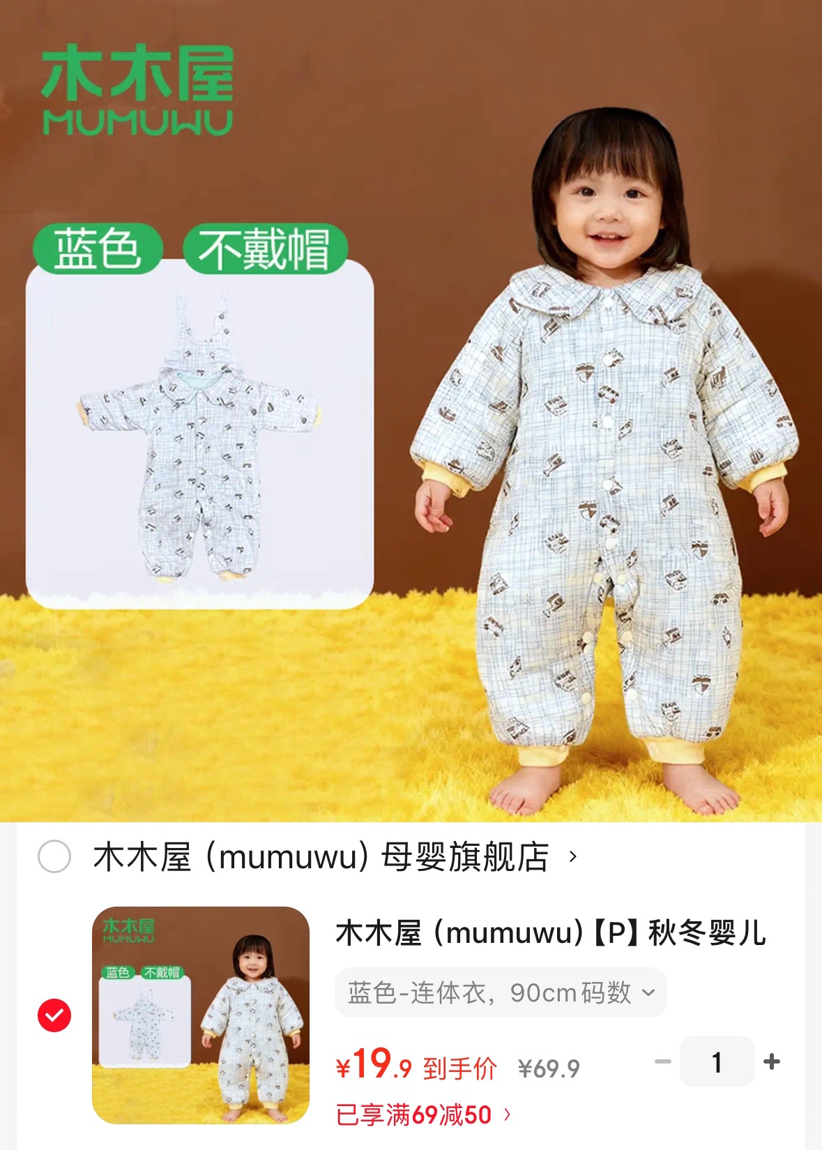 木木屋 (mumuwu)秋冬婴儿连体冬季保暖棉服 90cm码数【19.9】