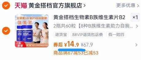14.9亓史低拍第1选项 黄金搭档 复合维生素30粒 2瓶 含8种B族维生素 提高免.疫力 好单发报员 2026年02月06日 09:30 0 举报 14.9亓史低拍第1选项【黄金搭档】复合维生素30粒 2瓶https://m.tb.cn/h.7tG4jkR含8种B族维生素 提高免.疫力加班/熬夜/喝酒上火人群必备 复制文案
