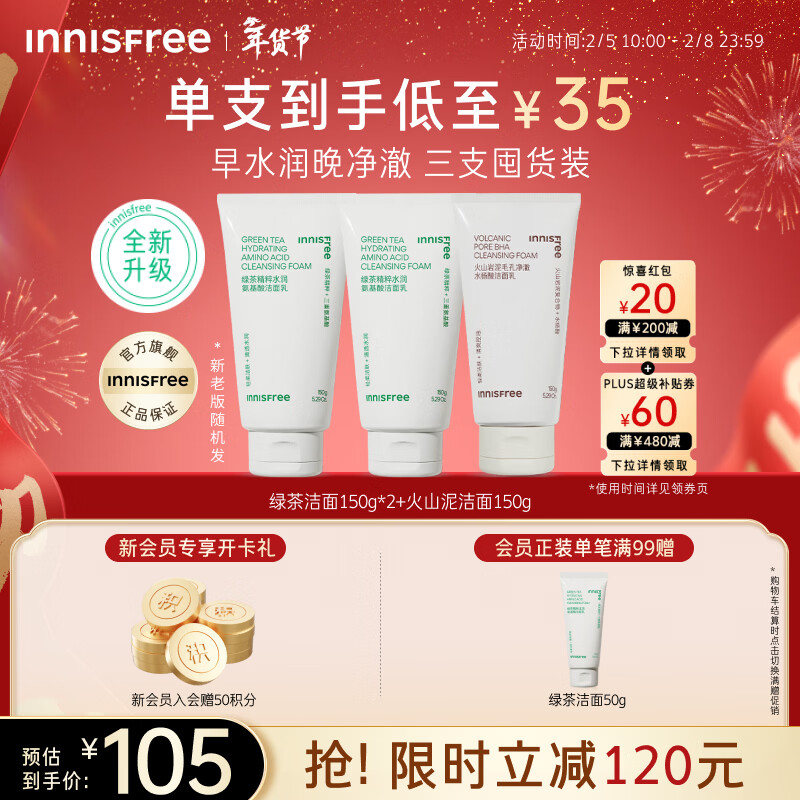 悦诗风吟(innisfree)绿茶洗面奶150g*3