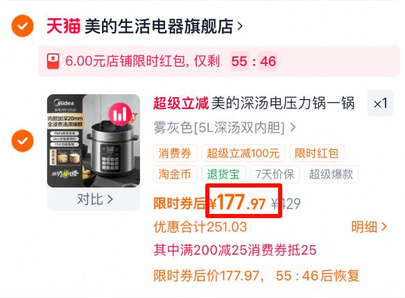 【美的】多功能智能电压力锅5L