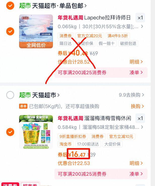 ④、凑单商品加购 1件 一起付款然后退掉凑单