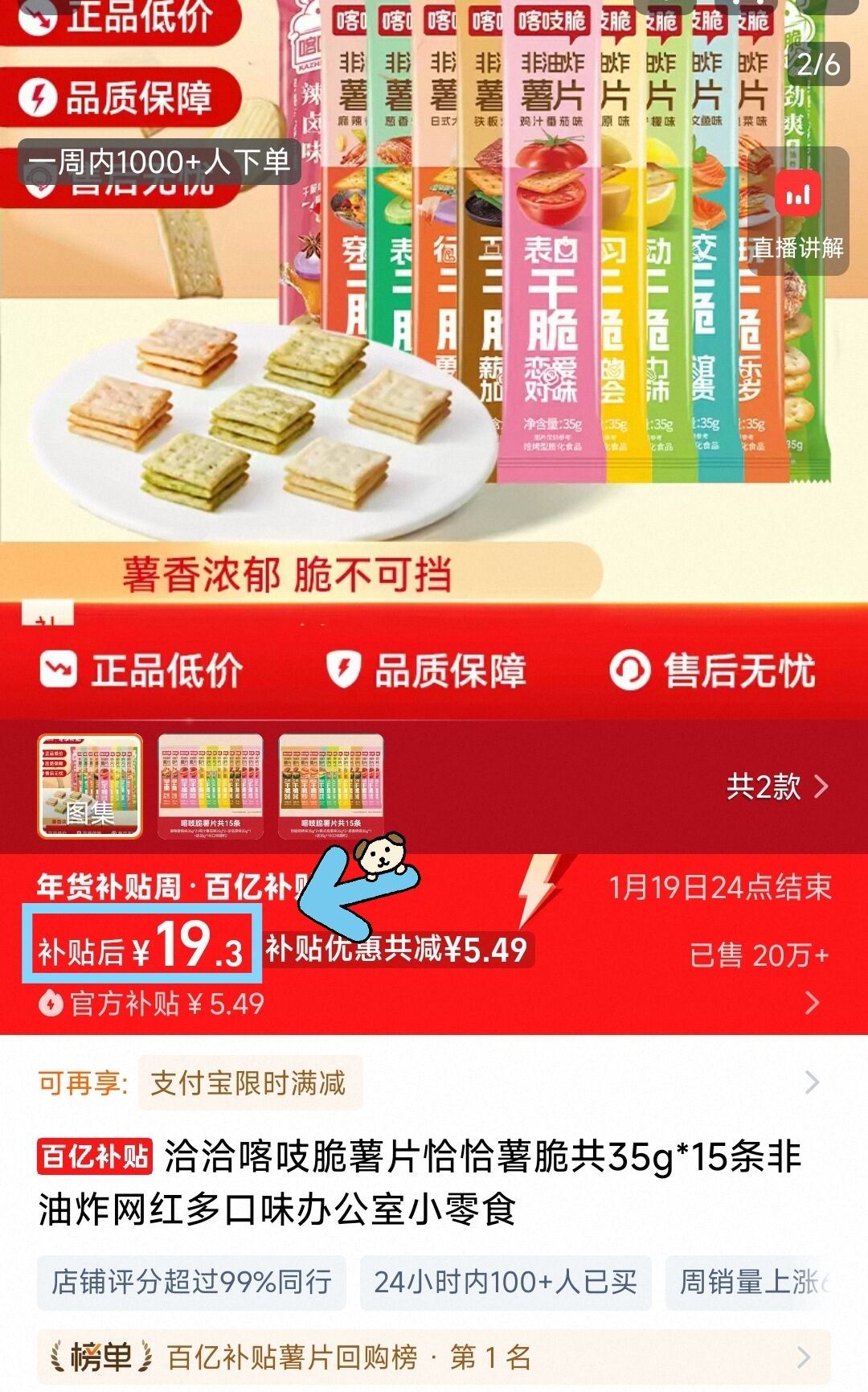 折1亓/条限时百亿补贴 15条19.3亓!这圿超划蒜! ---好单发报员2026年02月06日 12:270举报 折1亓/条限时百亿补贴15条19.3亓!这圿超划蒜!---【洽洽】喀吱脆酥脆薯片15条酥脆诱人分量足 好吃到嗦手指https://m.tb.cn/h.7tC11Fj复制此消息 打开桃宝查看复制文案