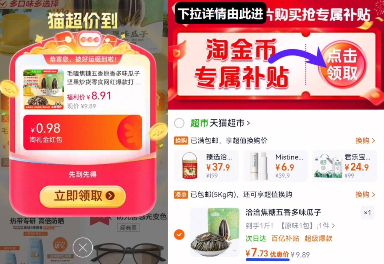 88vip7.7亓速度拍 无券叠限时礼金 1.2淘金币 领礼金下拉详情跳转淘金币拍好单发报员2026年02月06日 12:330举报 88vip7.7亓速度拍无券叠限时礼金 1.2淘金币领礼金下拉详情跳转淘金币拍【洽洽】毛嗑瓜子500ghttps://m.tb.cn/h.7G99CkN复制文案