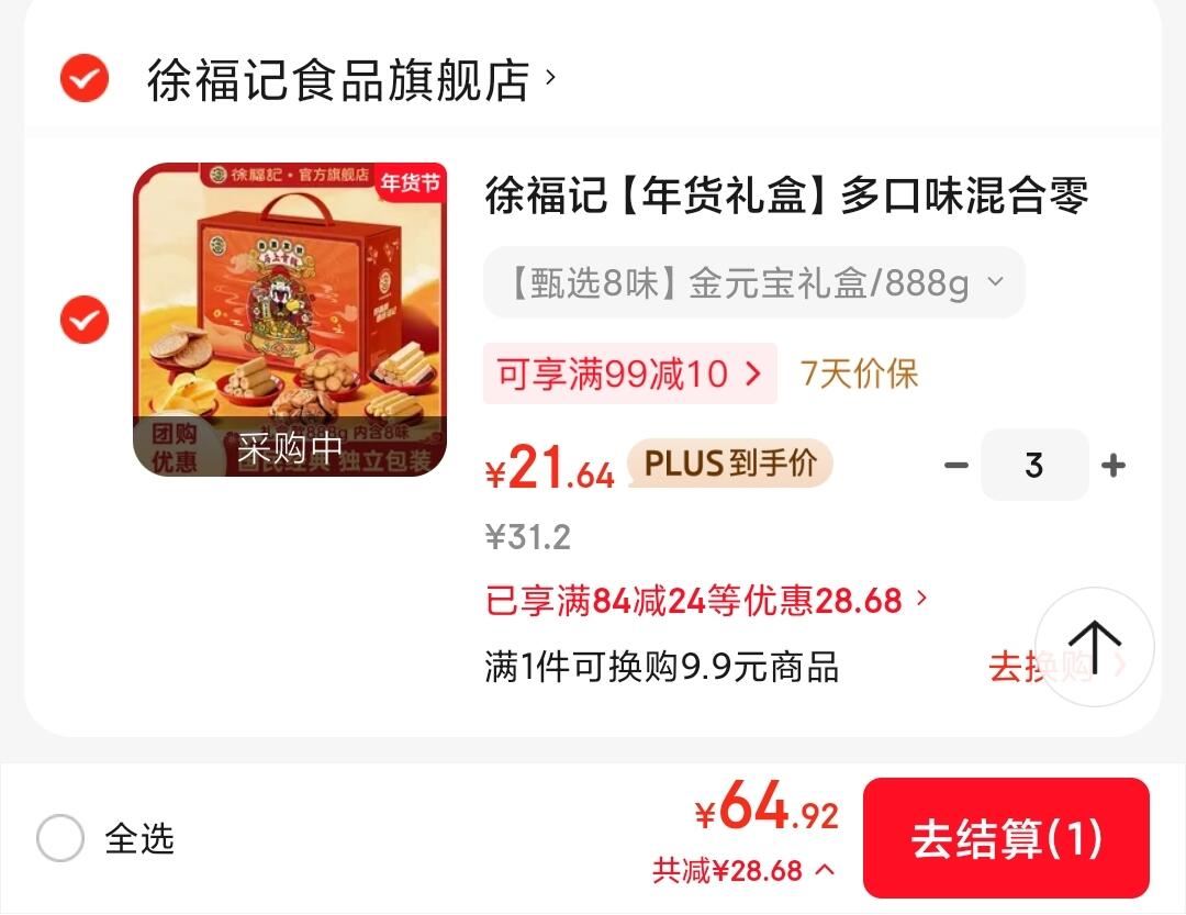 PLUS好价! 21.64元/箱 3箱共69.6元! 徐福记 多口味混合零食礼盒 888g好单发报员2026年02月06日 13:320举报 PLUS好价!21.64元/箱 3箱共69.6元!徐福记 多口味混合零食礼盒 888ghttps://u.jd.com/JD5OSih PLUS仅需64.92元 年货好价提前备上~复制文案