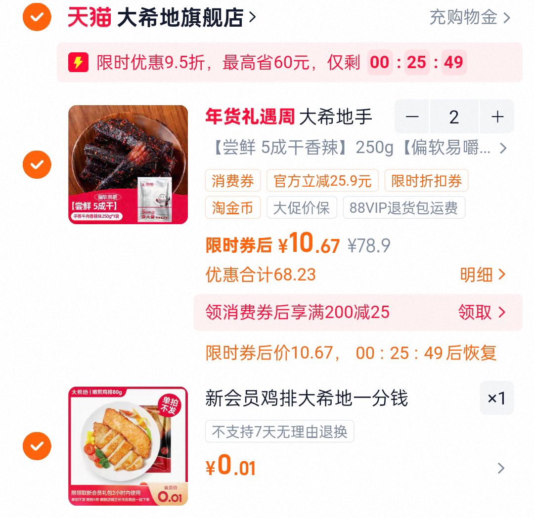 大希地手撕风干牛肉干250g选项 弹95折立减 入会领5奍 金币页面拍2件10.67一件 可带着新人礼好单发报员2026年02月06日 14:510举报 大希地手撕风干牛肉干250g选项弹95折立减 入会领5奍金币页面拍2件10.67一件 可带着新人礼https://m.tb.cn/h.7GmwfYT复制文案