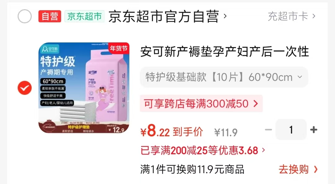 安可新 产褥垫孕产妇产后一次性护理垫60*90cm10片装,凑后【8.2】