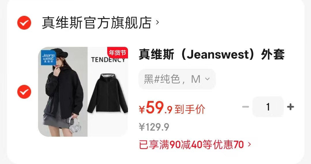 真维斯 外套女装软壳三防加绒保暖夹克【59.9】