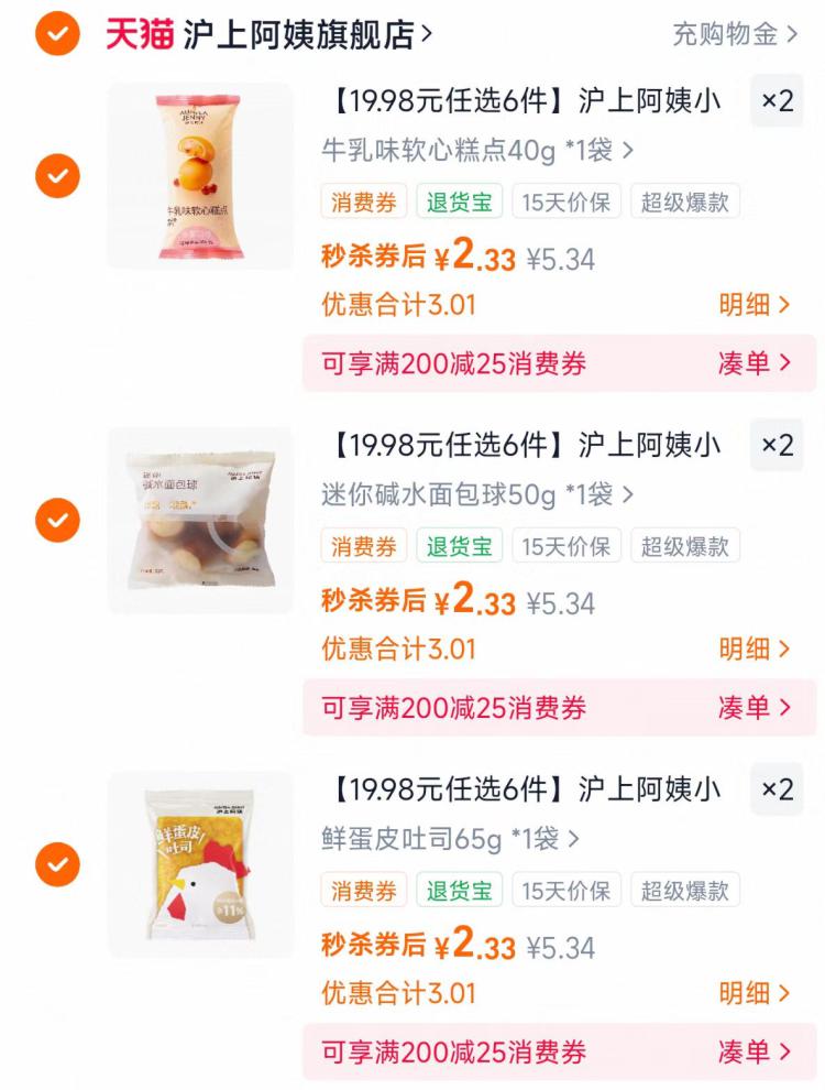 沪上阿姨面包任选6件13元.9 任选6件拍成立,折2.3/袋 - 好单发报员 2026年02月06日 15:51 0 举报 沪上阿姨面包任选6件13元.9任选6件拍成立,折2.3/袋-就是卖奶茶那个沪上阿姨才2.3/个吐司,线下四五块!奶香奶香的 配咖啡/牛奶都可https://m.tb.cn/h.7FaNZsk 复制文案