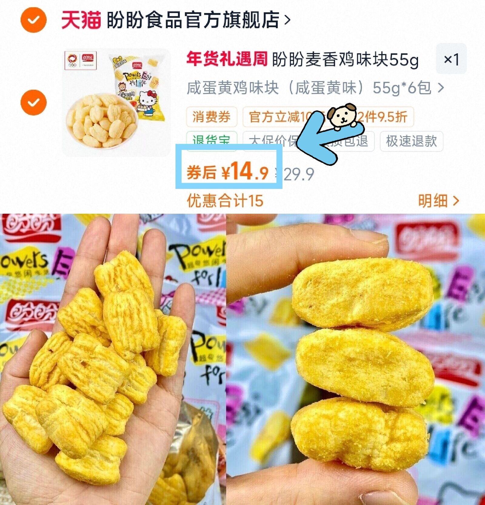 折2.4亓/包到手6包14.9亓 从小吃到大!还全是大包的! --- 好单发报员 2026年02月06日 16:43 0 举报 折2.4亓/包到手6包14.9亓从小吃到大!还全是大包的!---【盼盼】麦香鸡味块55g*6包https://m.tb.cn/h.7G1QY0q追剧好搭档,香脆又解馋~ 复制文案