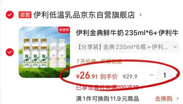 金典 鲜牛奶 235ml 6瓶 伊利