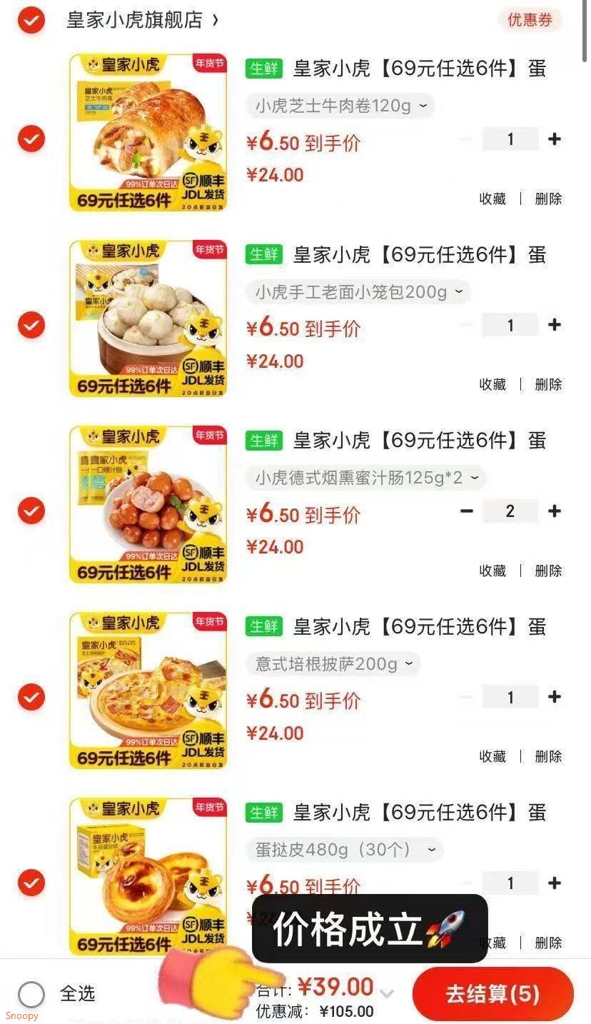 皇家小虎 蛋挞/披萨/培根等