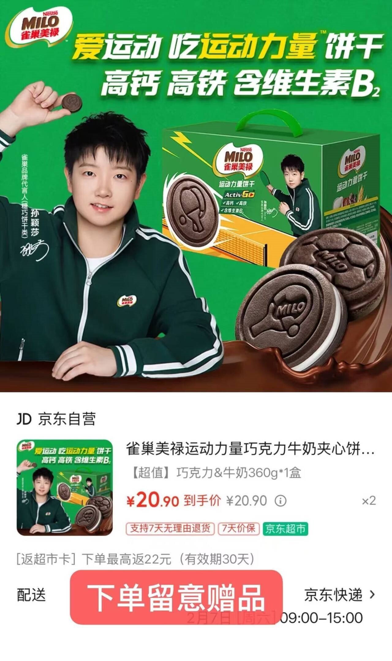 雀巢饼干新.低 自营 美禄运动饼干礼盒360g 买2件41.8亓 U,plus包邮好单发报员2026年02月06日 17:590举报 ——雀巢饼干新.低——【自营】美禄运动饼干礼盒360ghttps://u.jd.com/JGePb2A买2件41.8亓 U,plus包邮*再反22亓超.市卡 低至19.8亓*才9.9/件 精美礼盒 送礼也行复制文案