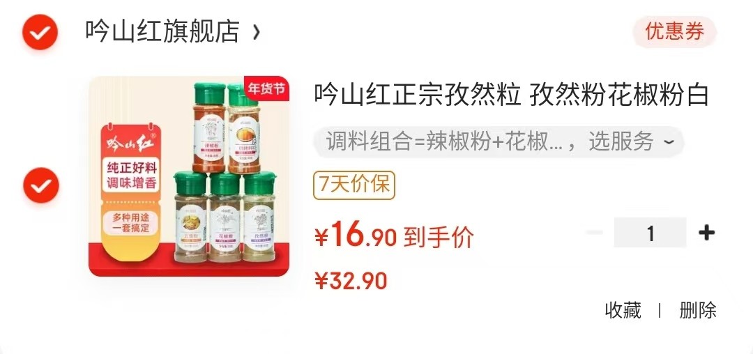 吟山红 调料组合 辣椒粉 花椒粉 孜然粉【16.9】