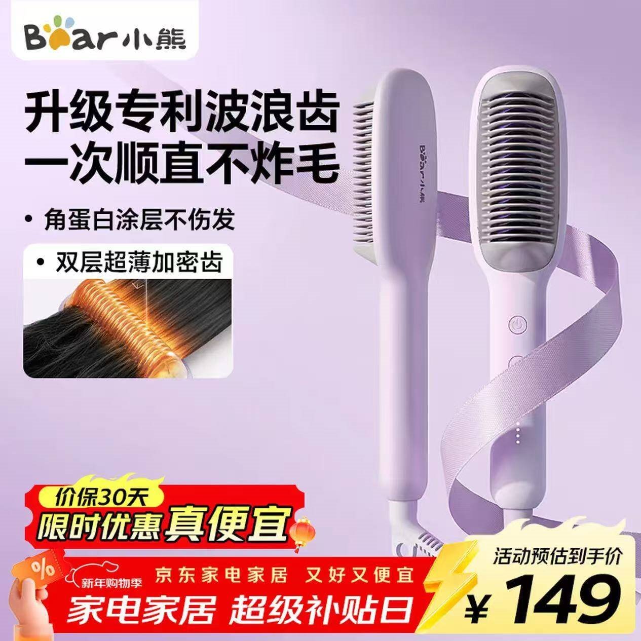 小熊 专利加密齿梳直发梳